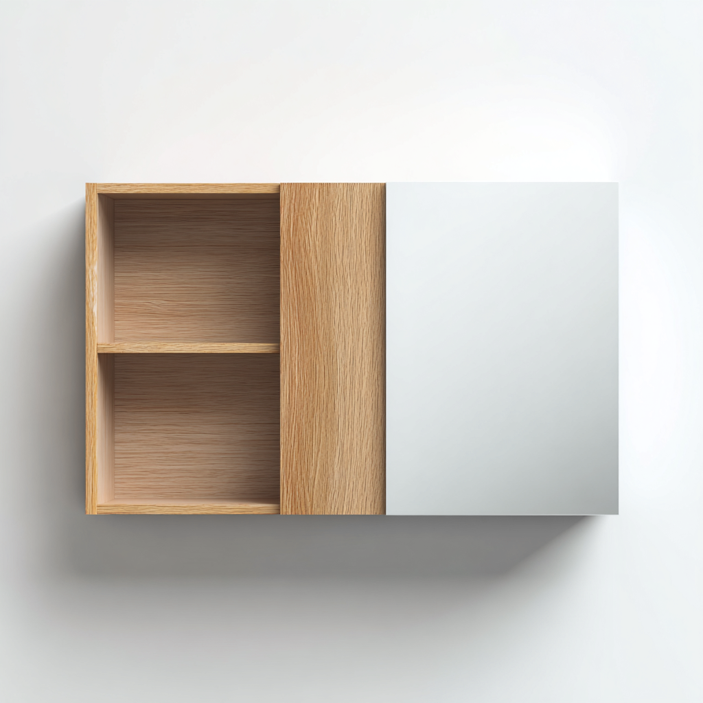 Mobile bagno-legno-specchio-80x15x45 cm-Legno naturale-Design moderno
