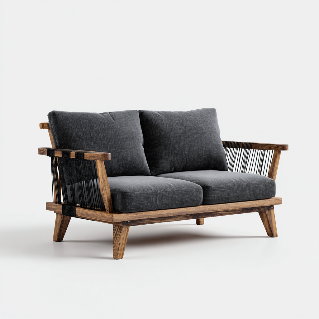 Divani da esterno-legno-tessuto-148x78x80cm-nero-design moderno