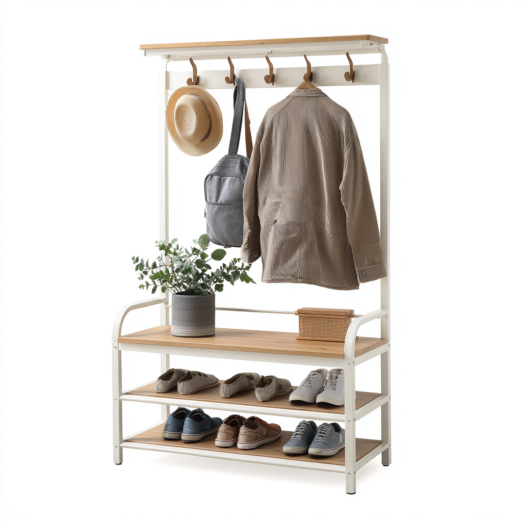 Attaccapanni-metallo-legno-78x34x170 cm-bianco-naturale-nordico