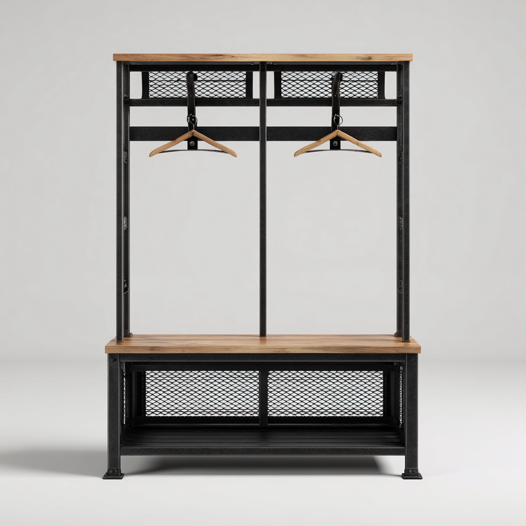 Attaccapanni-metallo-legno-120x40x185 cm-nero-naturale-industriale