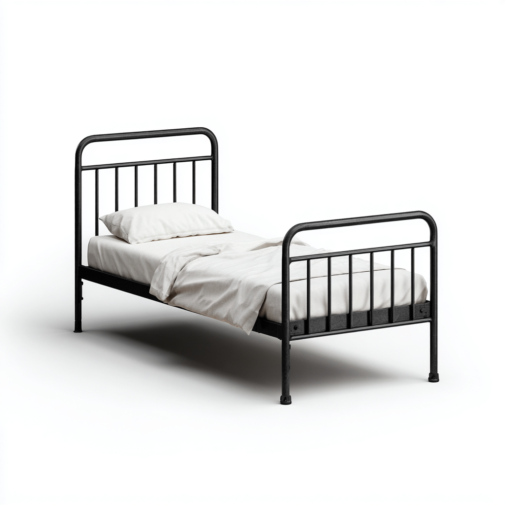 Letto singolo-metallo-195x90x95cm-nero-design industriale per camera da letto