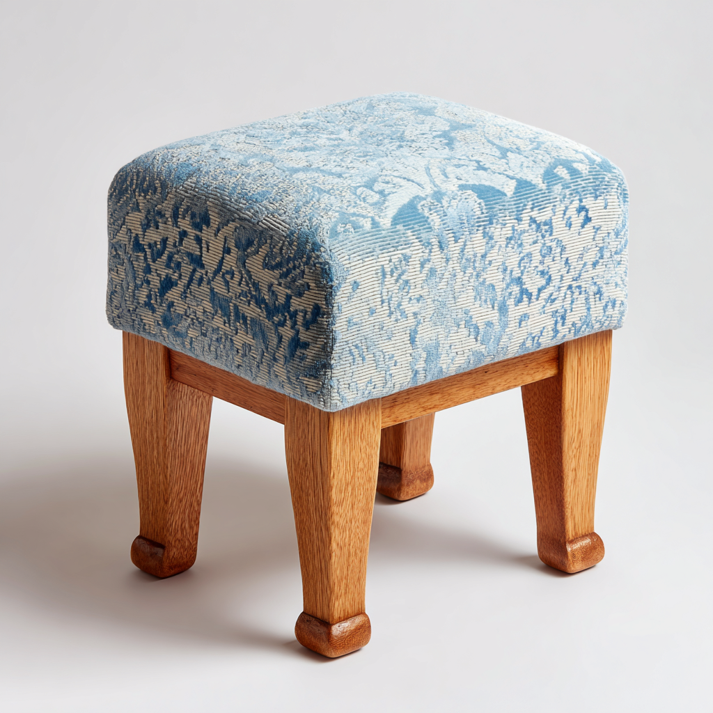 Pouf - tessuto decorativo - 40x40x45 cm - azzurro-legno - stile classico