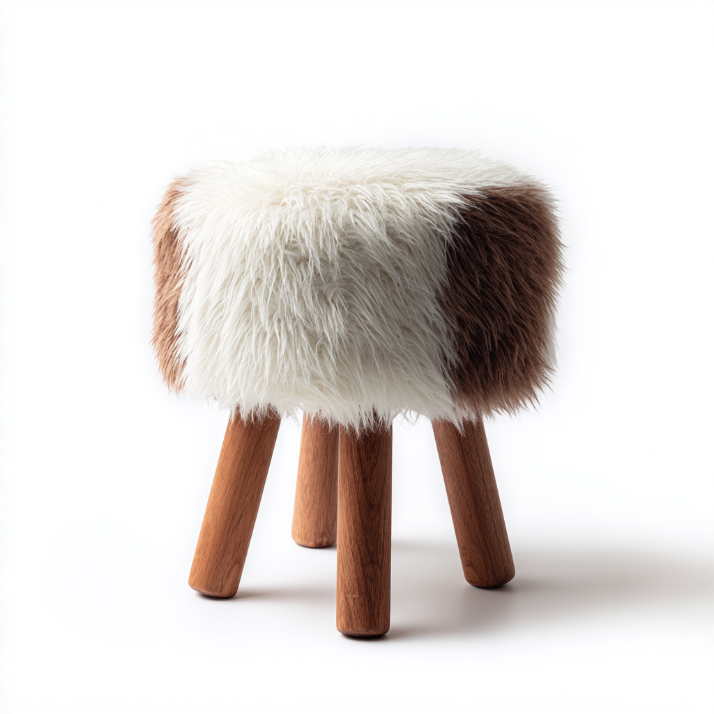 Pouf - tessuto effetto pelliccia - 35x35x45 cm - bianco-marrone-legno - stile naturale decorativo