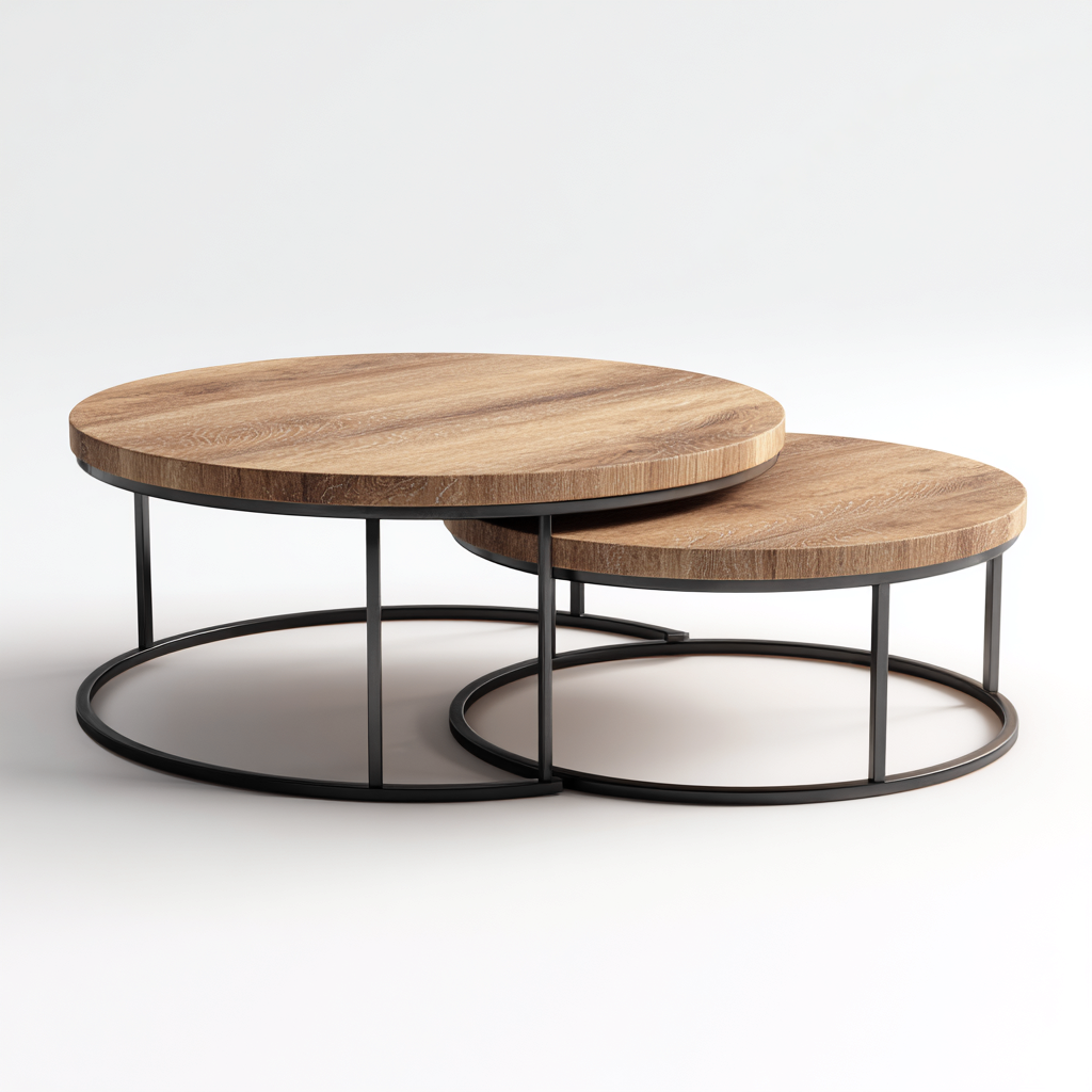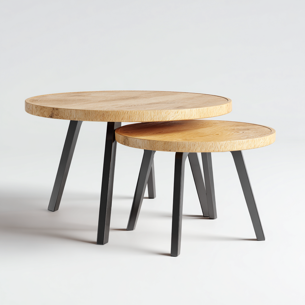Tavolini da caffè - legno-metallo - 90x90x46 cm-70x70x41 cm - naturale-nero - stile moderno