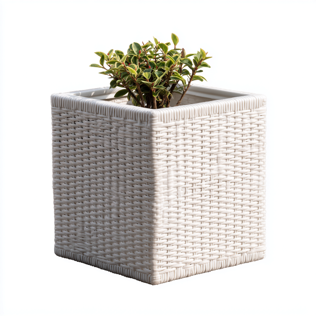 Vaso per piante - resina intrecciata - 40x40x45 cm - bianco - stile moderno