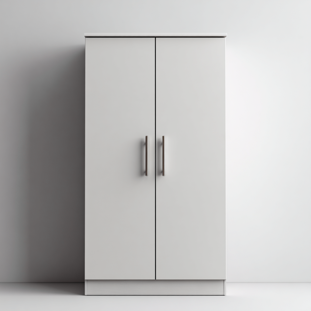 Questo armadio dal design moderno offre una soluzione di contenimento essenziale e ordinata per la camera da letto. Le ante battenti a tutta altezza e la finitura chiara contribuiscono a creare un ambiente luminoso e pulito, adatto a spazi contemporanei.