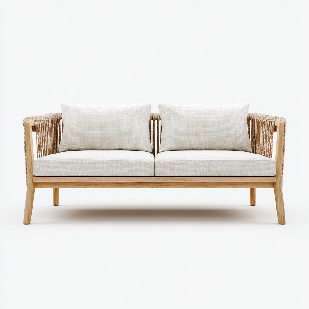 Questo divano da esterno è progettato per arredare giardini terrazze e spazi outdoor offrendo una seduta equilibrata e confortevole per l'uso quotidiano. Il design pulito e la struttura in legno naturale lo rendono adatto a contesti esterni moderni.