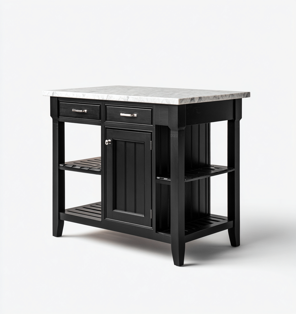 Superficie superiore resistente per la preparazione degli alimenti, spazi chiusi per riporre utensili e accessori e vani aperti per un accesso pratico agli oggetti di uso frequente. La struttura garantisce stabilità durante l'utilizzo quotidiano.
