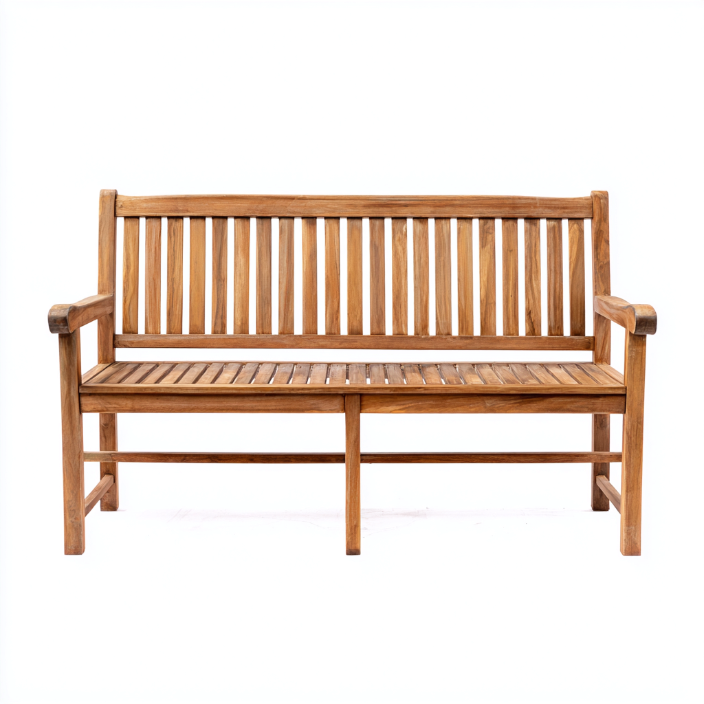Panca da giardino in legno progettata per offrire una seduta stabile e funzionale in spazi esterni come giardini, terrazze e cortili. La struttura con schienale a listelli e braccioli laterali garantisce comfort e supporto durante l'utilizzo quotidiano.