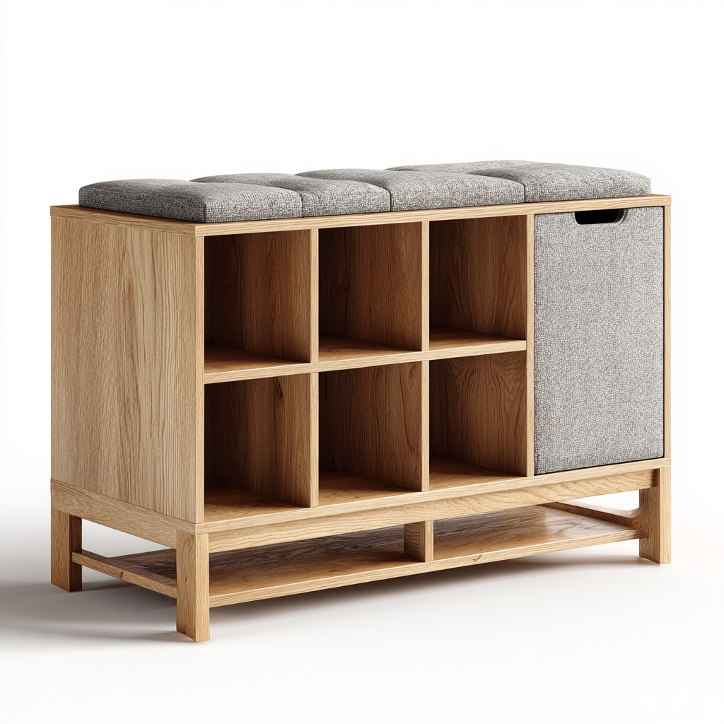 Lo spazio interno consente una sistemazione ordinata delle calzature e di oggetti da ingresso. La superficie superiore rivestita offre un appoggio confortevole per le attivita quotidiane.