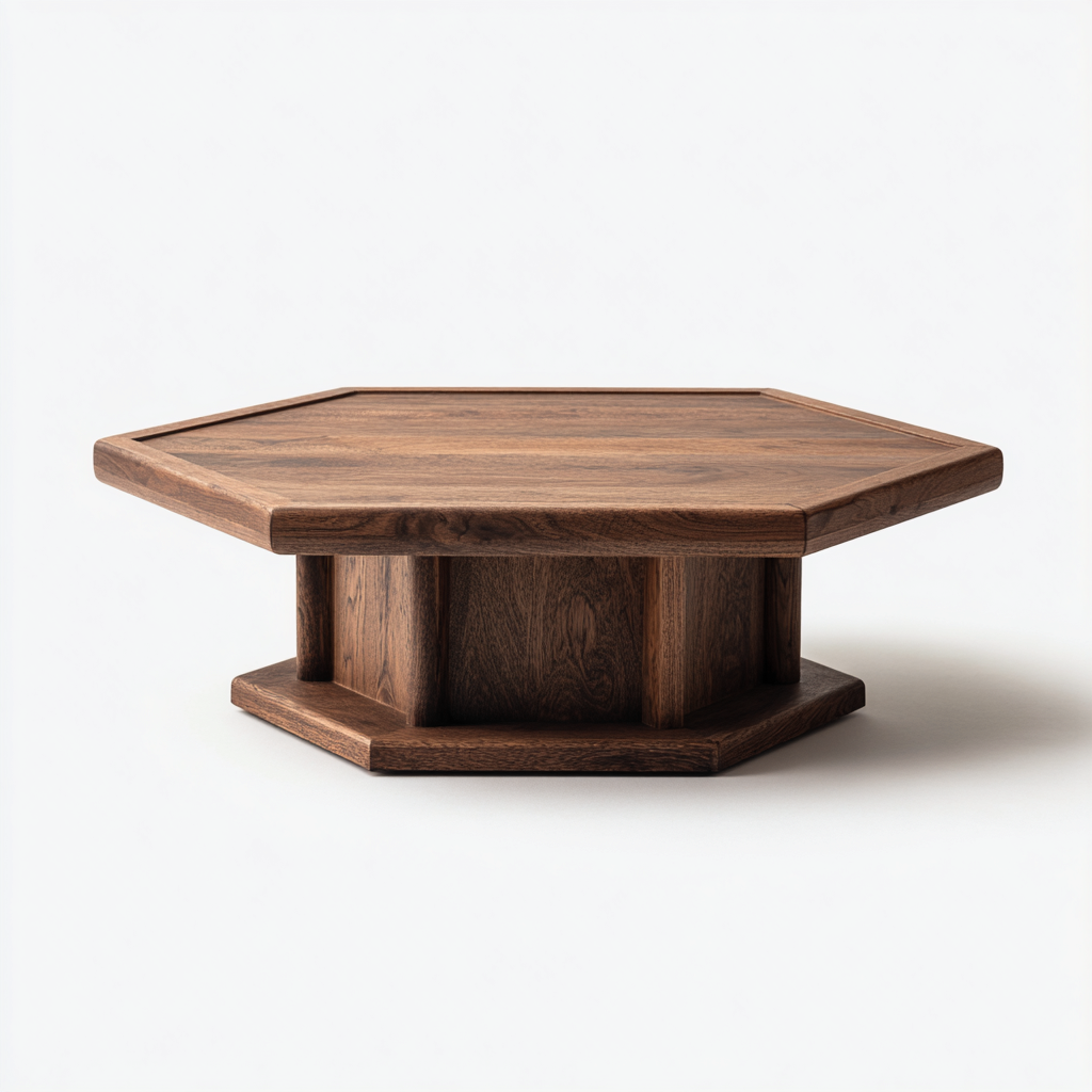 Questo tavolino da caffè presenta una forma geometrica compatta con piano esagonale e profilo basso, ideale per arredare il soggiorno con un carattere deciso e ordinato. Le proporzioni equilibrate lo rendono adatto come elemento centrale davanti al divano.